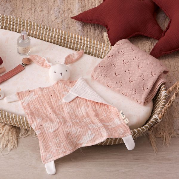 ROPA DE CUNAMantas para bebe Toquilla bambú rosa empolvado