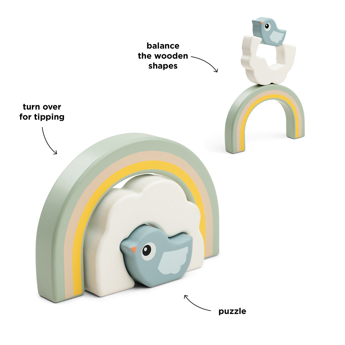Tu peque podrá apilar estas 3 piezas multifuncionales dejando volar su imaginación. Y es que podrá crear sus propias figuras tratando de evitar que se caigan las piezas.